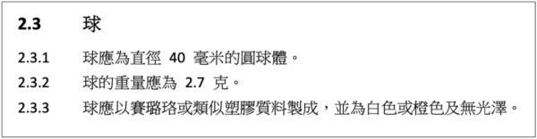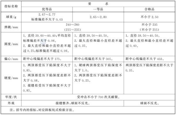 GB/T 20045-2005《40mm乒乓球》中对球的具体指标要求