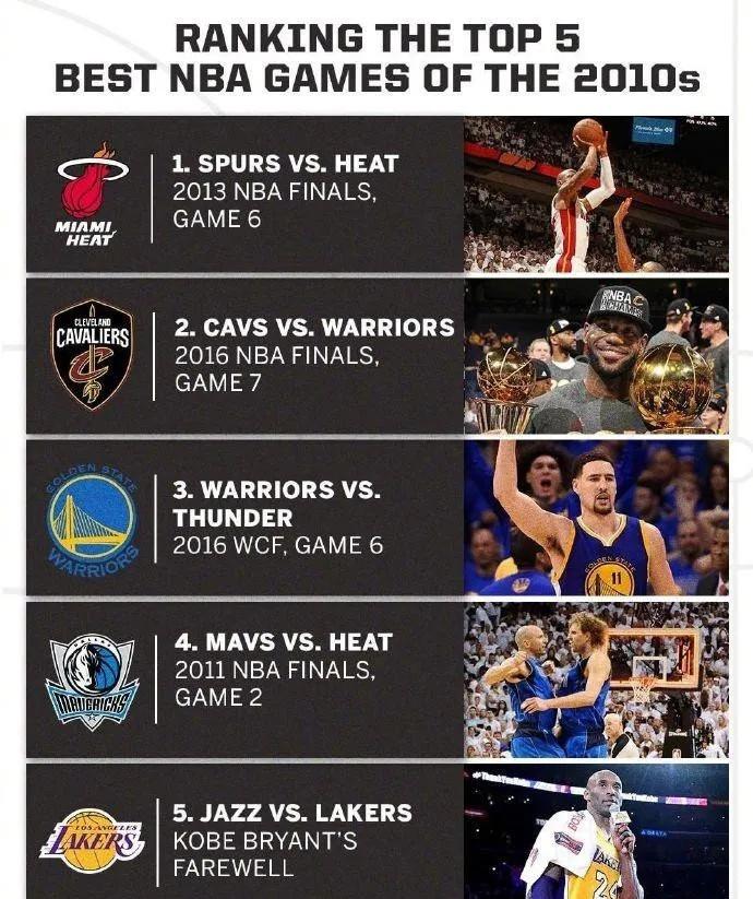 近日,美媒评选出了NBA近十年来最伟大的5场比赛,或许你们已经猜到了其中的一些,下面我们来看一看吧。