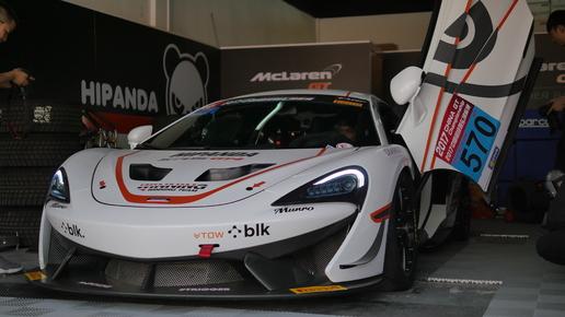 今年新开的组别GT4,迈凯伦570S造型很动感,不知道是不是前脸设计比较可爱,受到品牌HIPANDA的赞助。