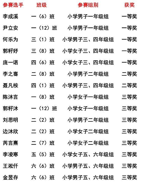 小学组包揽团体前八名!