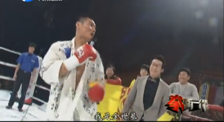 2013年9月11日武林风喀什站中外对抗赛中KO泰国选手:坤善猜(取得了32战全胜纪录。) [2]