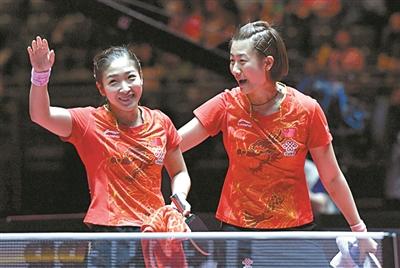 杜塞世乒赛女双冠军丁宁、刘诗雯
