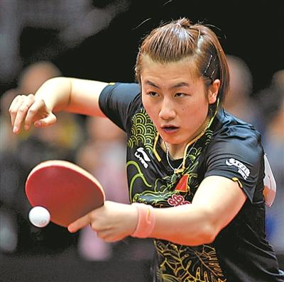 6月4日,在本届世乒赛的一场中国队“内战”中,“大满贯”冠军得主丁宁以4∶2击败队友朱雨玲,第三次加冕世乒赛女单冠军。