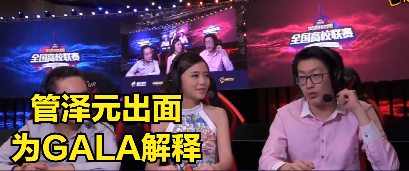如果了解过GALA职业生涯的朋友应该清楚,GALA这位选手最早参加这种比较正规的比赛,就是代表自己的学校所参加的英雄联盟高校联赛,而GALA在上场比赛的时候,年纪也仅仅是15岁,这个年纪可以说是非常的小了,这也是让联盟比赛现场的解说感到非常的惊讶,并且在GALA的出场定妆照出现之后,有一位女解说更是直接在现场当中调侃GALA的长相着急,还好有管泽元出面及时接话。