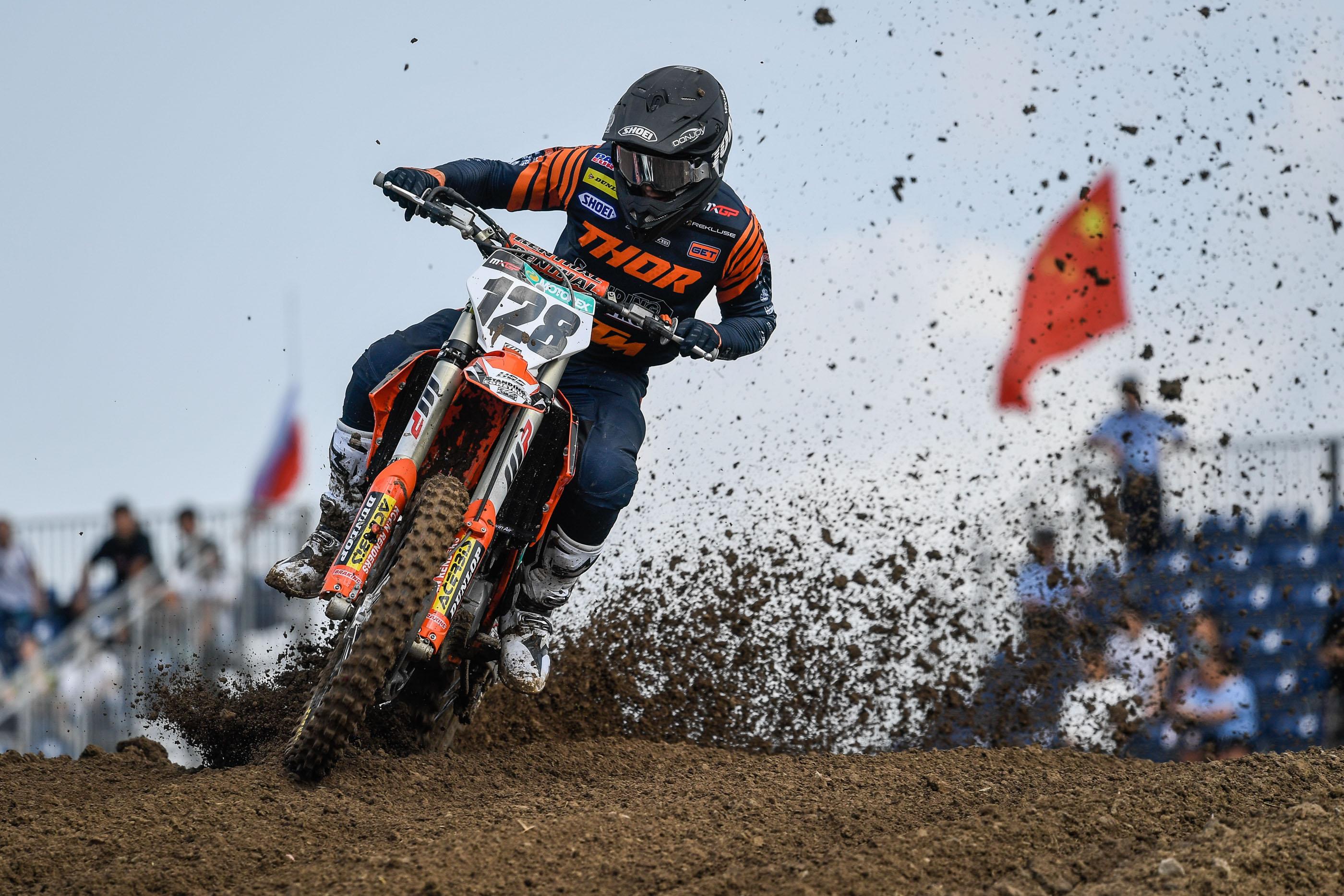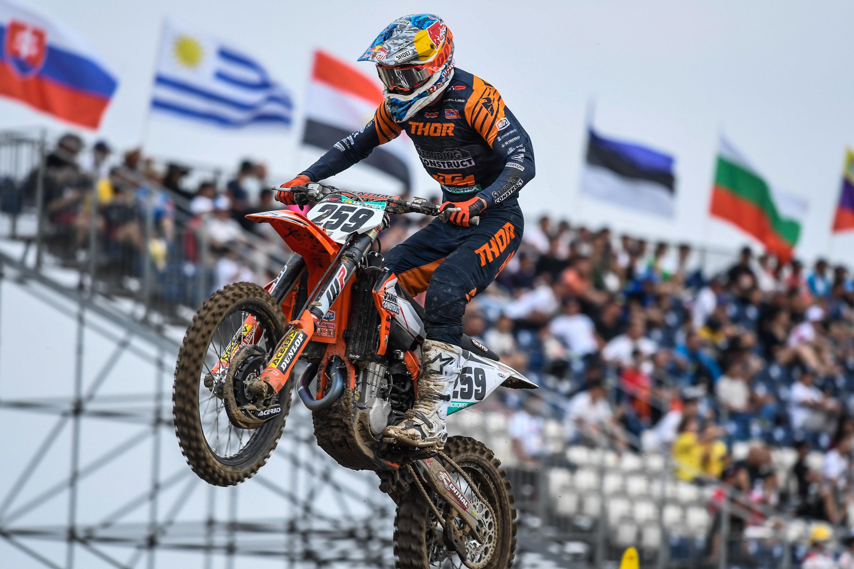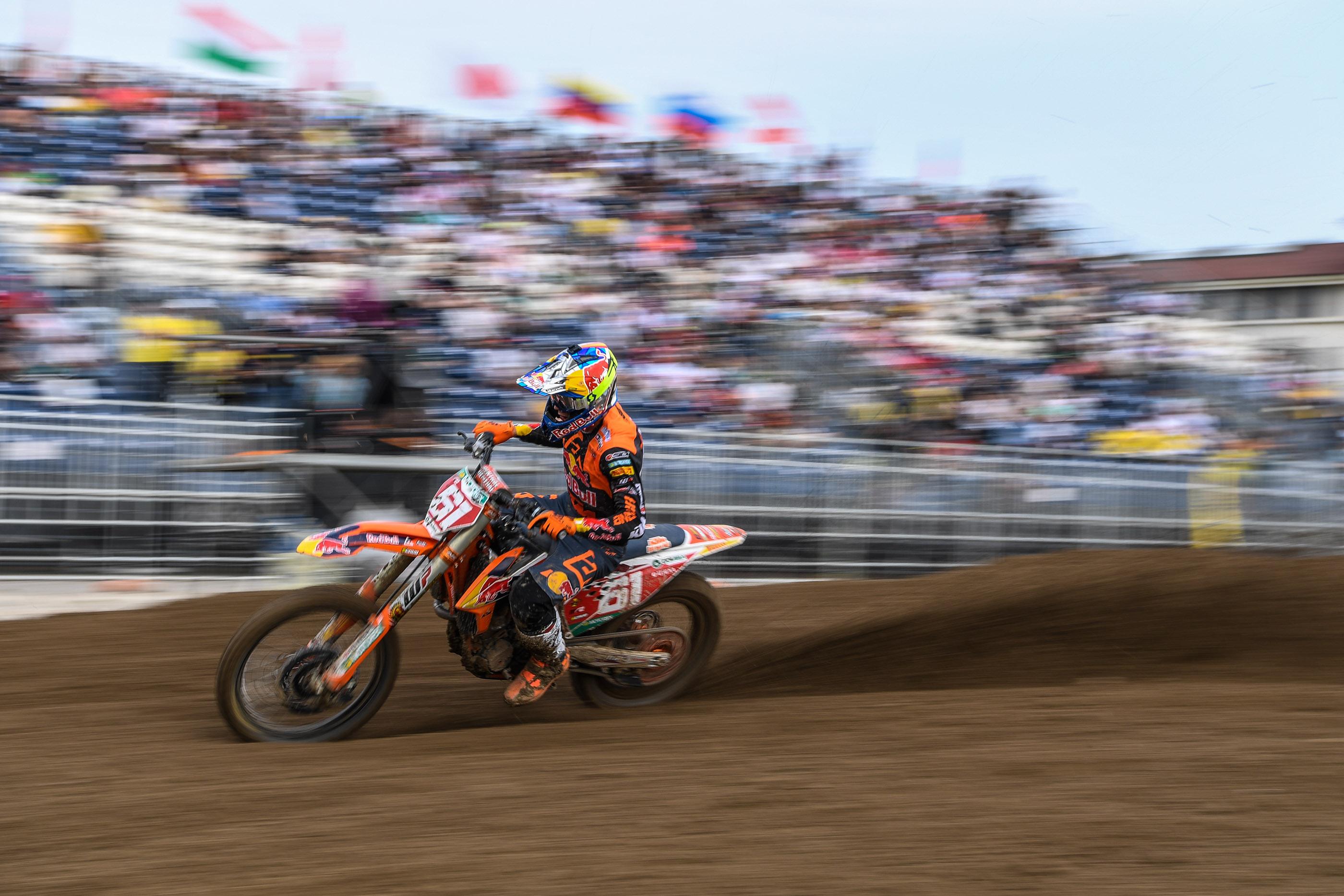 在今天的排位赛中,在MXGP组别来自立式结构科特姆(standing construct ktm)车队的259号荷兰籍车手coldenhoof·glenn夺得第一名;而MX2组别里来自红牛科特姆工厂竞速(red bull ktm factoryracing)车队的61号西班牙籍车手prado·Jorge夺得第一名。