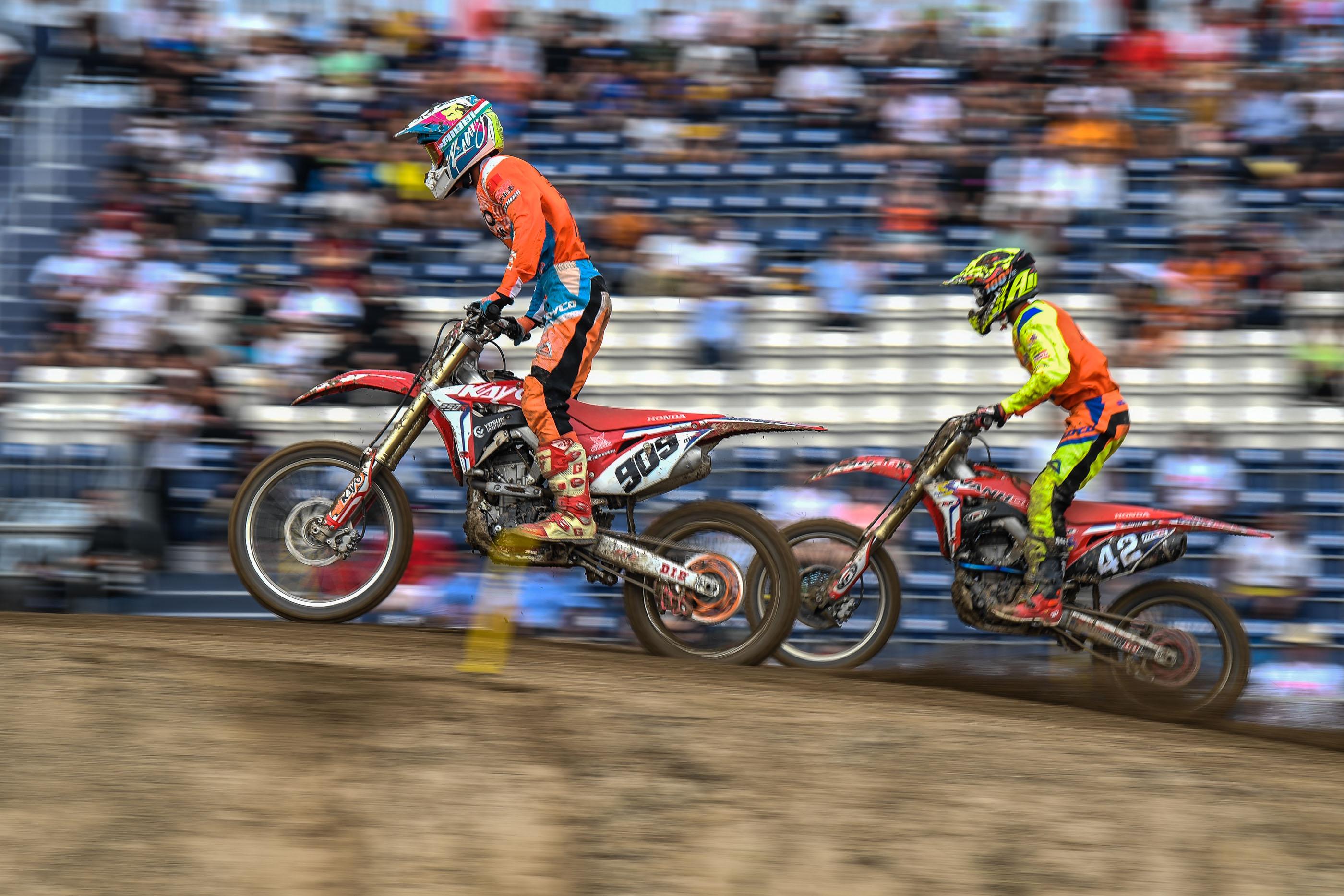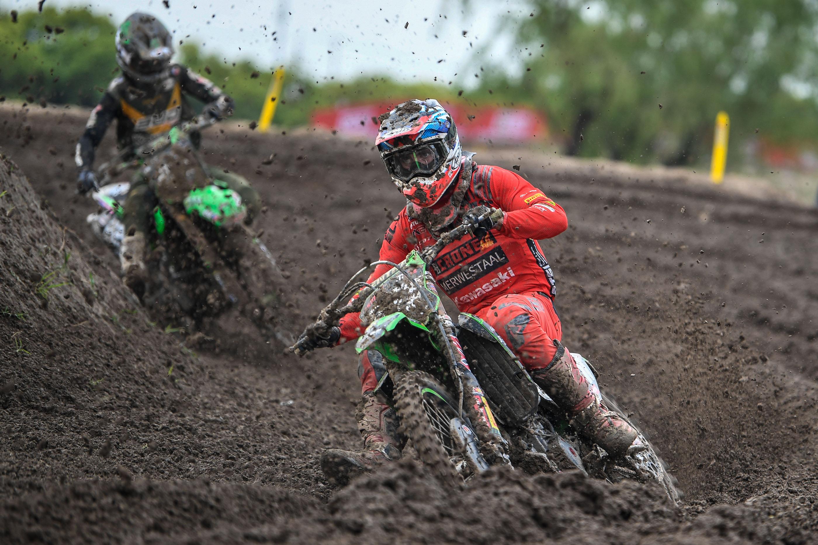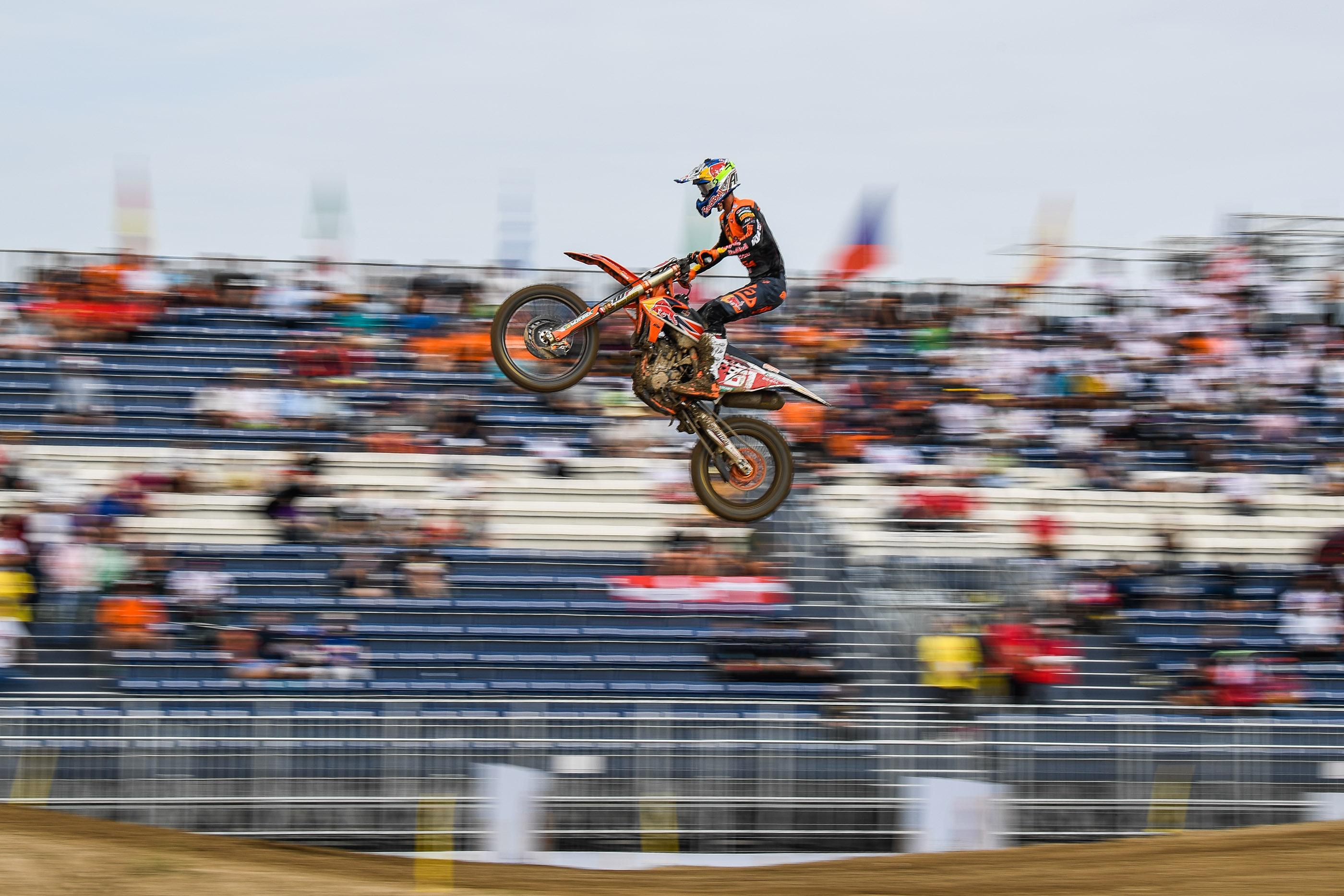 在今天的排位赛中,在MXGP组别来自立式结构科特姆(standing construct ktm)车队的259号荷兰籍车手coldenhoof·glenn夺得第一名;而MX2组别里来自红牛科特姆工厂竞速(red bull ktm factoryracing)车队的61号西班牙籍车手prado·Jorge夺得第一名。