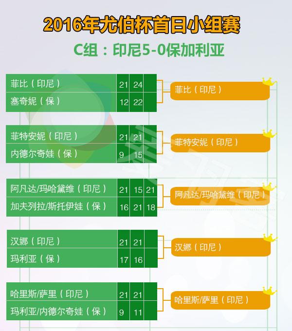 印尼队在对阵保加利亚的比赛中,依靠菲比、菲特安妮、阿凡达/玛哈黛维等人的胜利,5-0大胜保加利亚队。