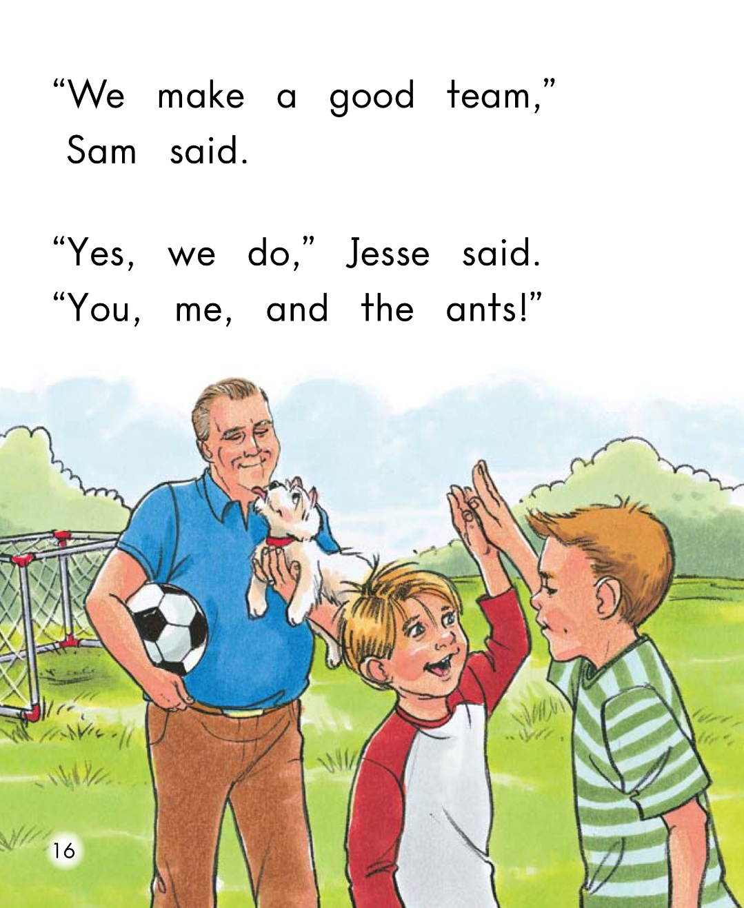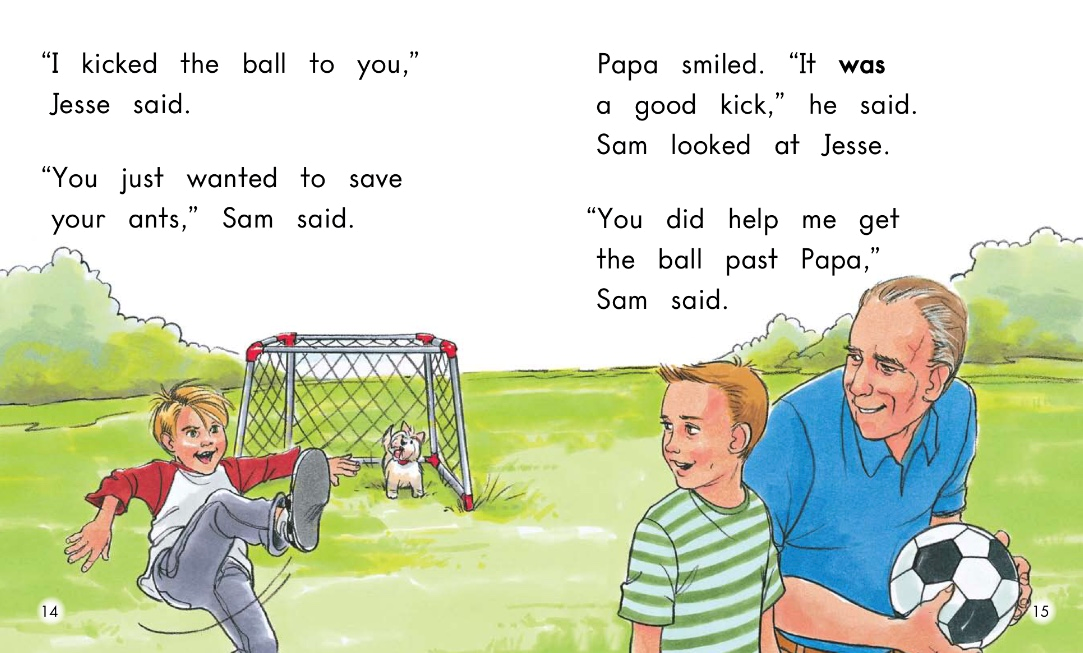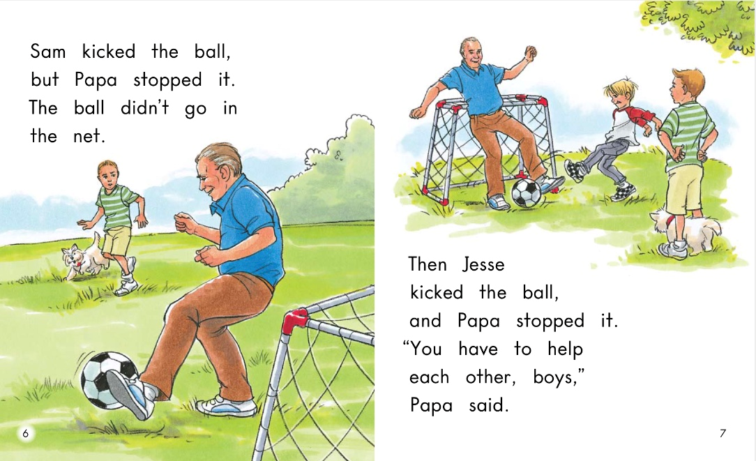 Then Jesse kicked the ball and Papa stopped it.