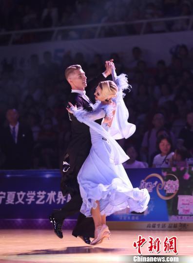 中新网银川7月25日电 (李佩珊于晶)7月24日晚,2019中国·宁夏标准舞、拉丁舞国际公开赛在宁夏体育馆开赛。本次比赛是世界级国标舞赛事,现场近20对著名国内外国标舞、拉丁舞选手同台竞技。