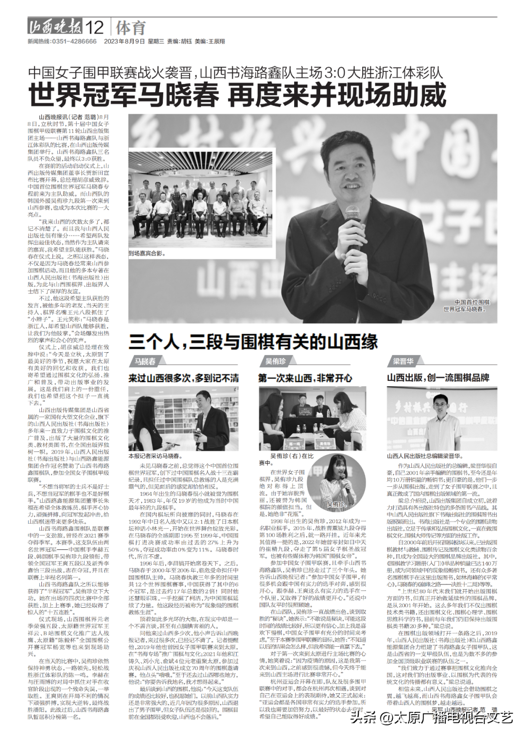 作为山西人民出版社的总编辑,梁晋华很自豪,自己2001年亲手编辑的围棋书,至今还是年均10万册销量的畅销书;更自豪的是,他们一步一步从围棋出版,走到了女子围甲联赛之中,且真正做成了国内围棋出版领域的第一流。