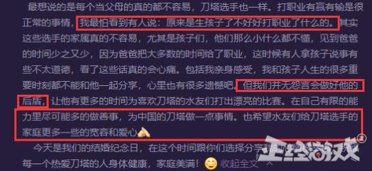 fy的老婆为了支持他打DOTA,连自己结婚生子的事都向外界隐瞒了,直到后来才公开,为的就是不希望那些影响fy训练的不和谐声音出现。