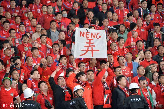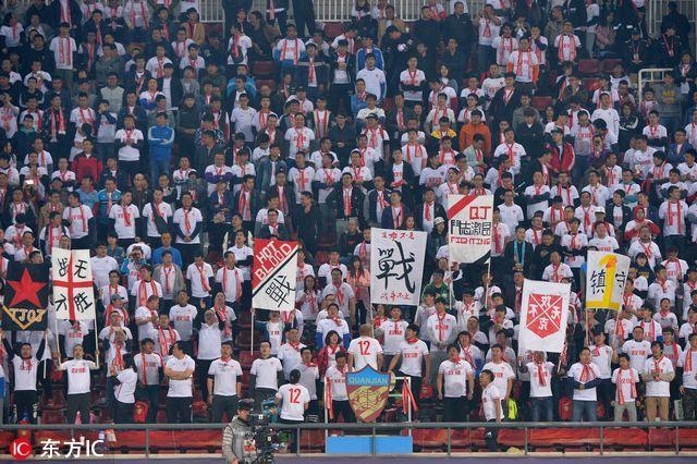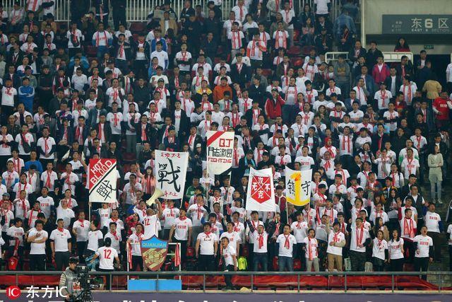 2017年4月1日,天津,2017中超联赛第3轮,天津权健VS河南建业。双方球迷手举横幅气氛火爆。 (图片署名: 无痕/东方IC)