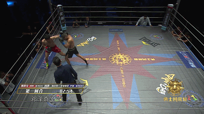 但是邓泽奇可不是那么容易退缩的。他擦干了脸上的血水,继续开始战斗。终于,对手扛不住他的连续重拳击打,直接被裁判叫停比赛。邓泽奇KO获胜!