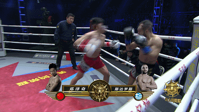 赛场上头脑冷静沉着的邓泽奇,瞄准机会,再次重拳攻击对手,打得对手丧失还手能力。真是再厉害的对手碰到猛烈攻击、勇往直前的邓泽奇,也只能后悔了。
