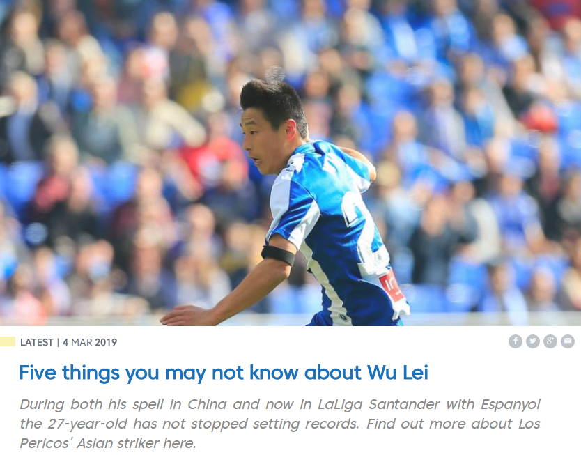 武磊出色的表现,获得了西甲官网的关注,近日西甲官方在其网站上撰文向全世界球迷介绍了这位中国前锋。