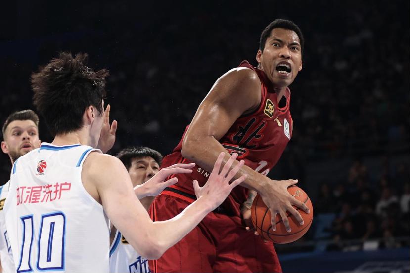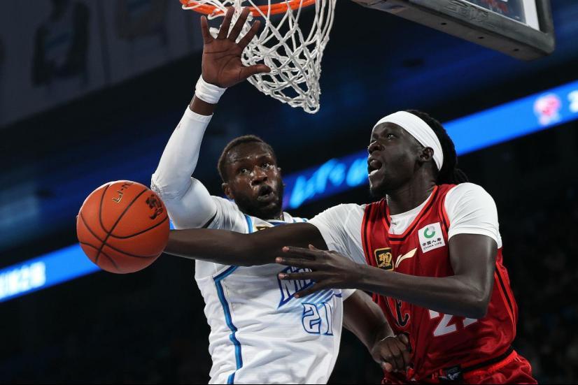 北京北汽队球员奥莫特(右)卡位。中国城市报记者 全亚军摄