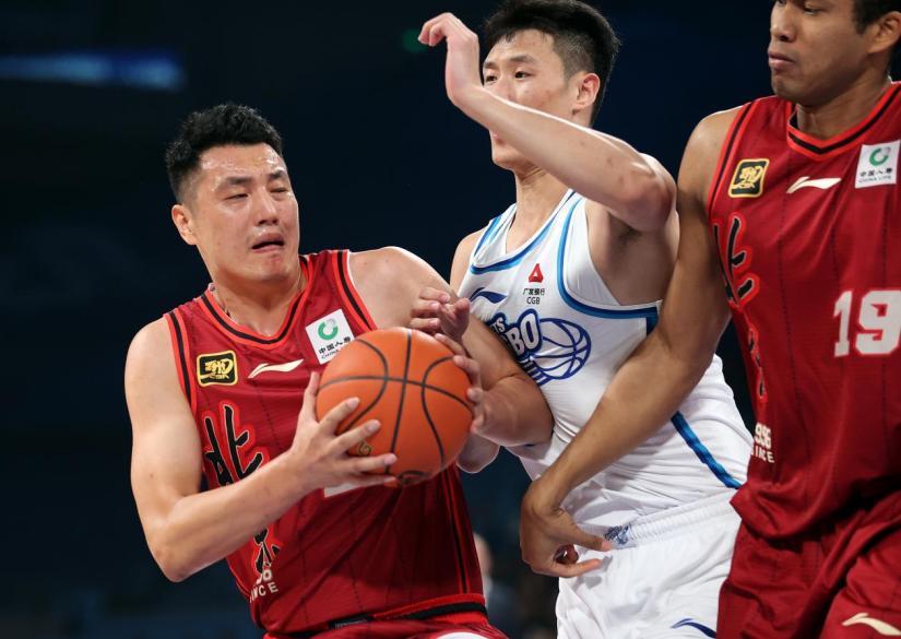 北京北汽队球员曾凡博(右)卡位。中国城市报记者 全亚军摄