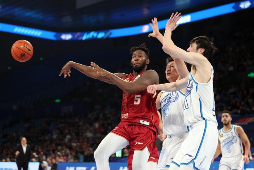 北京北汽队球员杰曼(左)传球。中国城市报记者 全亚军摄