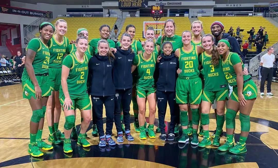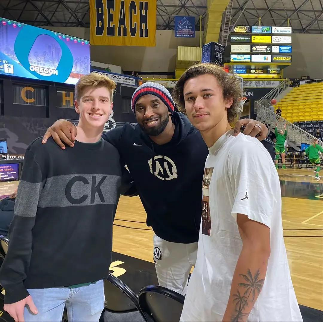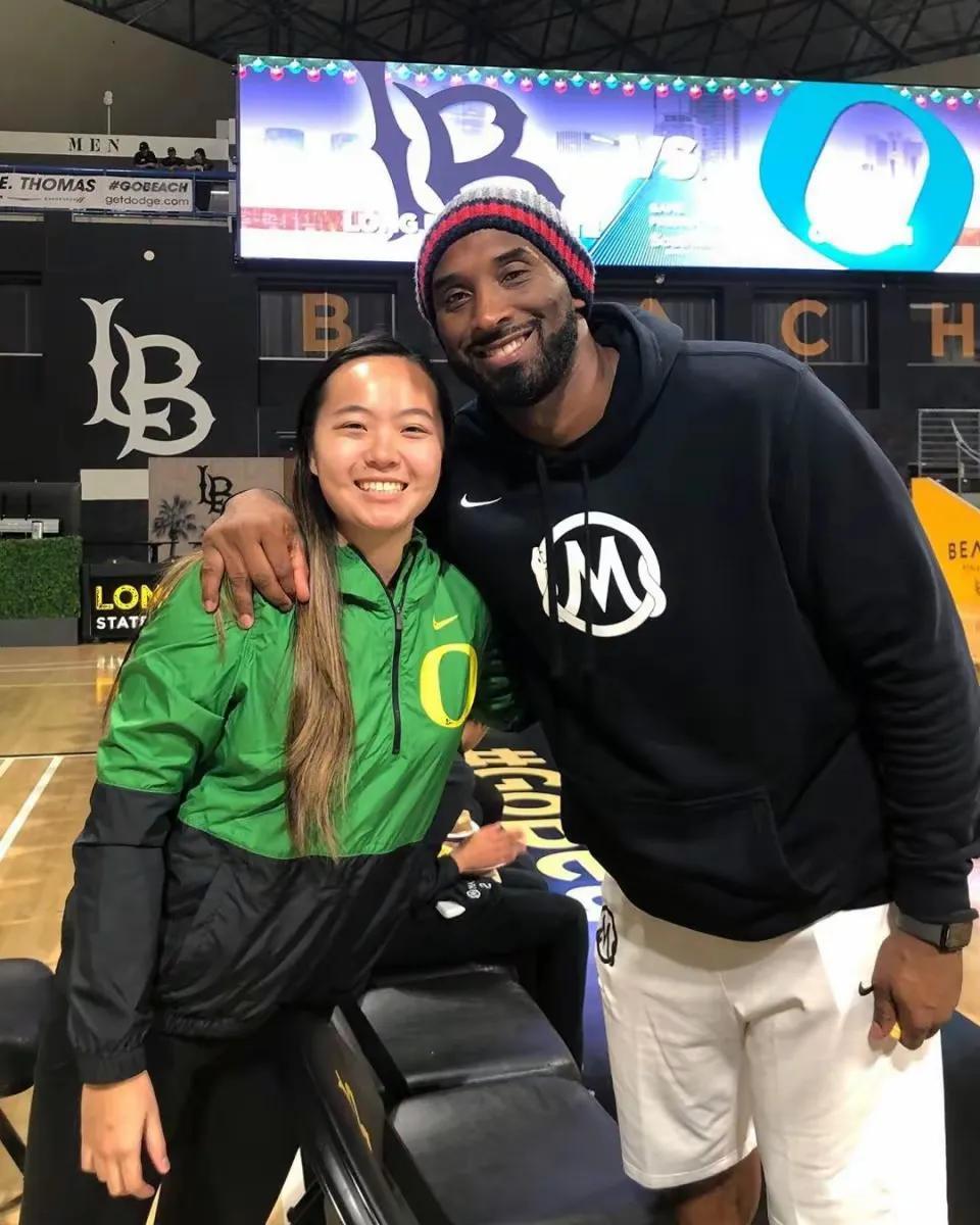 6.2019年12.15号,科比携二女儿吉安娜观看俄勒冈大学对阵长滩州立大学比赛。