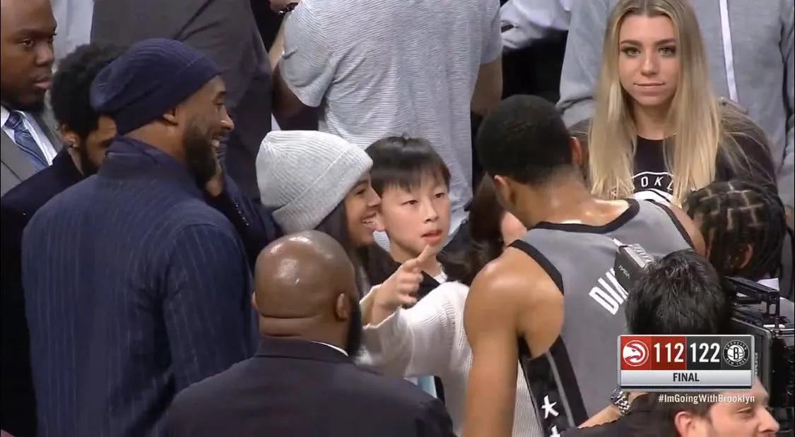 篮网老板娘陪科比父女观看比赛。