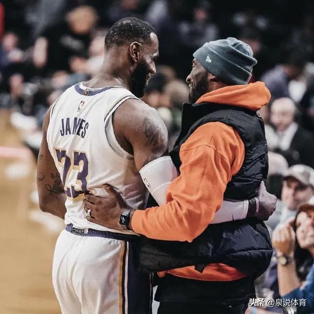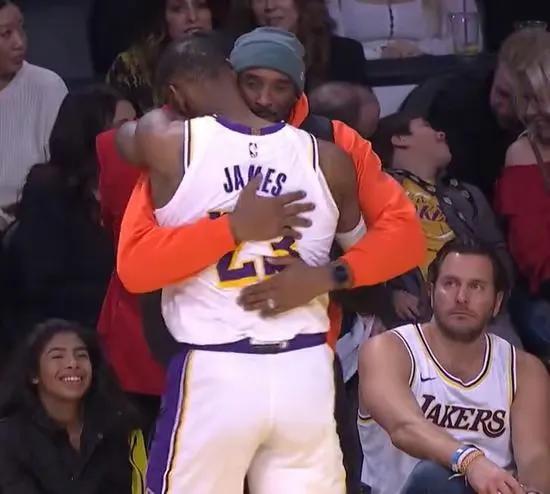 科比与詹姆斯拥抱,詹姆斯的加盟让湖人重燃夺冠希望!