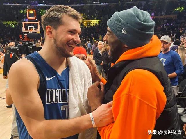 科比与东契奇交流,两人都很开心。