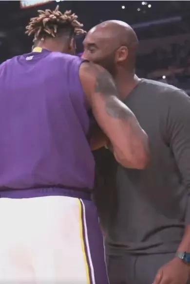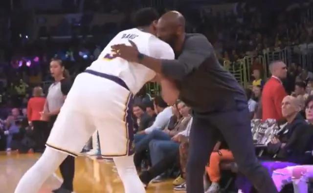 安东尼戴维斯与科比拥抱致意。