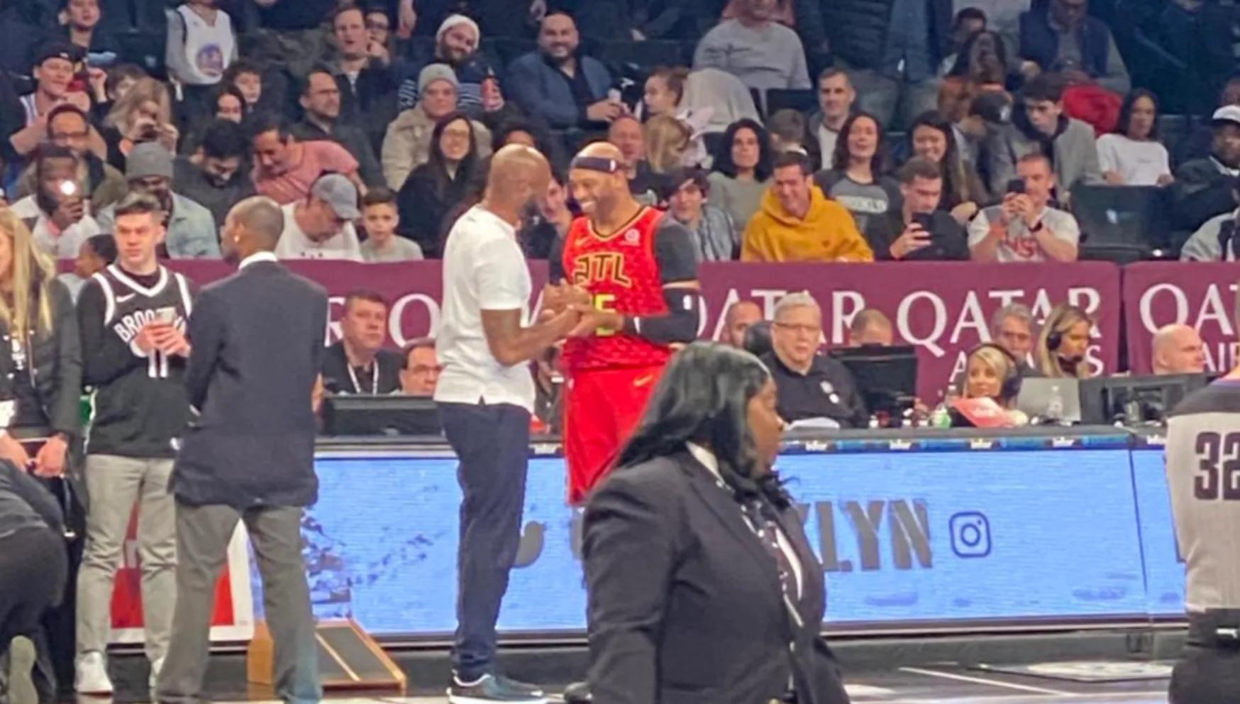 科比与文斯卡特交流。