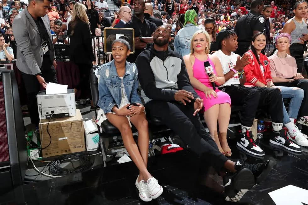 5.2019年7月28日,科比携二女儿吉安娜观看WNBA拉斯维加斯比赛。