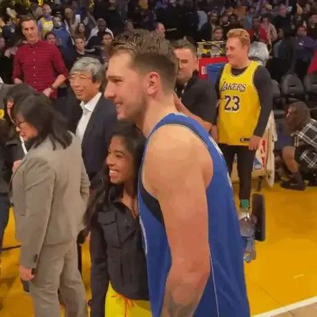 8.2019年12月30日,科比携女儿吉安娜观看湖人对阵独行侠的比赛。期间湖人球员纷纷与科比拥抱致意。赛后科比为女儿当摄影师,圆梦吉安娜与东契奇的合影心愿!