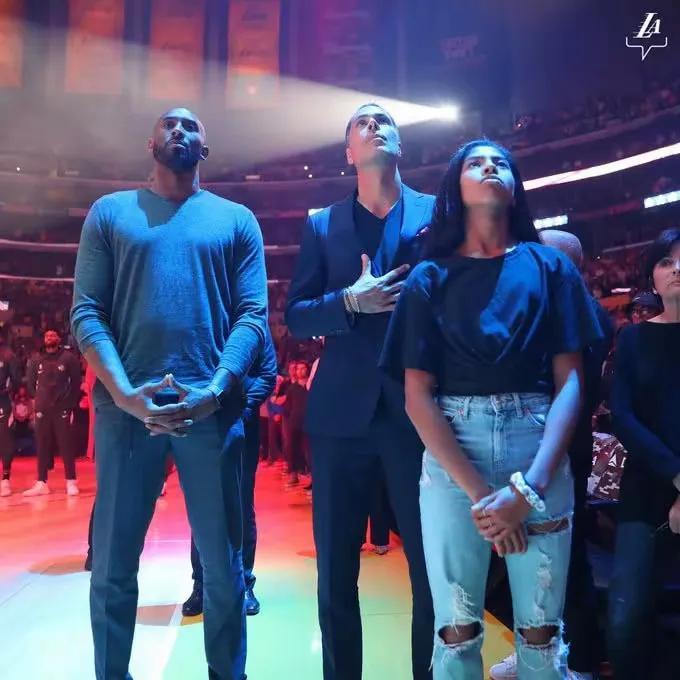赛前升旗环节,科比与佩林卡在一起。