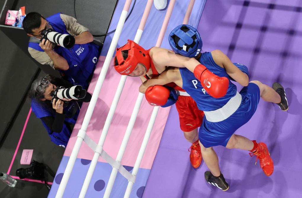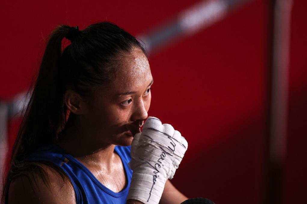 2021年8月1日,在东京奥运会女子51公斤级四分之一决赛中,中国选手常园不敌保加利亚选手科拉斯特娃,无缘四强。新华社记者 欧东衢 摄