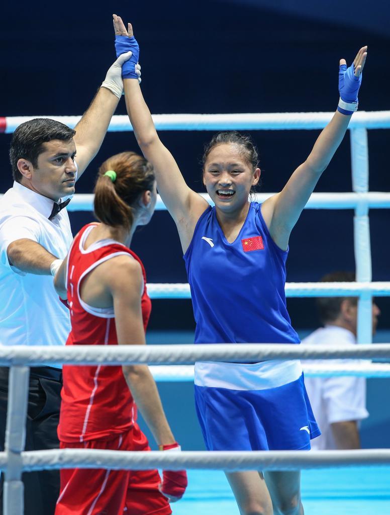 2014年8月26日,在南京青奥会拳击比赛女子48-51公斤级决赛中,中国选手常园获得金牌。新华社记者 杨磊 摄