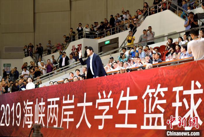 图为10月25日晚,中国篮球协会主席姚明出席2019年海峡两岸大学生篮球赛开幕仪式。当日,2019年海峡两岸大学生篮球赛在福建福州开赛,共有16支大学生球队参与本次比赛。 张斌 摄