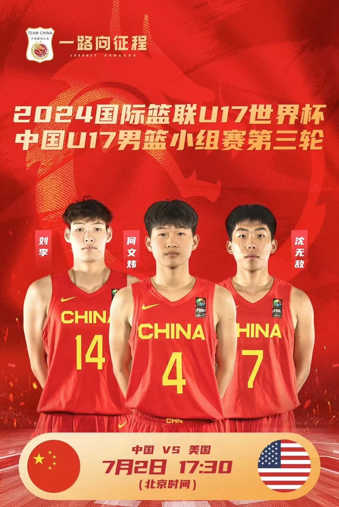 北京时间7月2日,中国男篮和澳大利亚男篮将进行热身赛,同一时间U17男篮世界杯,中国U17男篮将对阵美国U17男篮,两场比赛将于17:30同时开打。