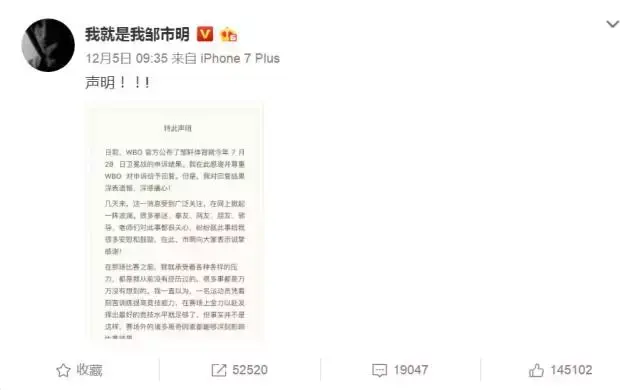 昨天上午,邹市明一纸声明引爆了社交媒体,他在《声明》中指出,自己的比赛被人暗动手脚,有中国人不断制造麻烦干扰比赛。