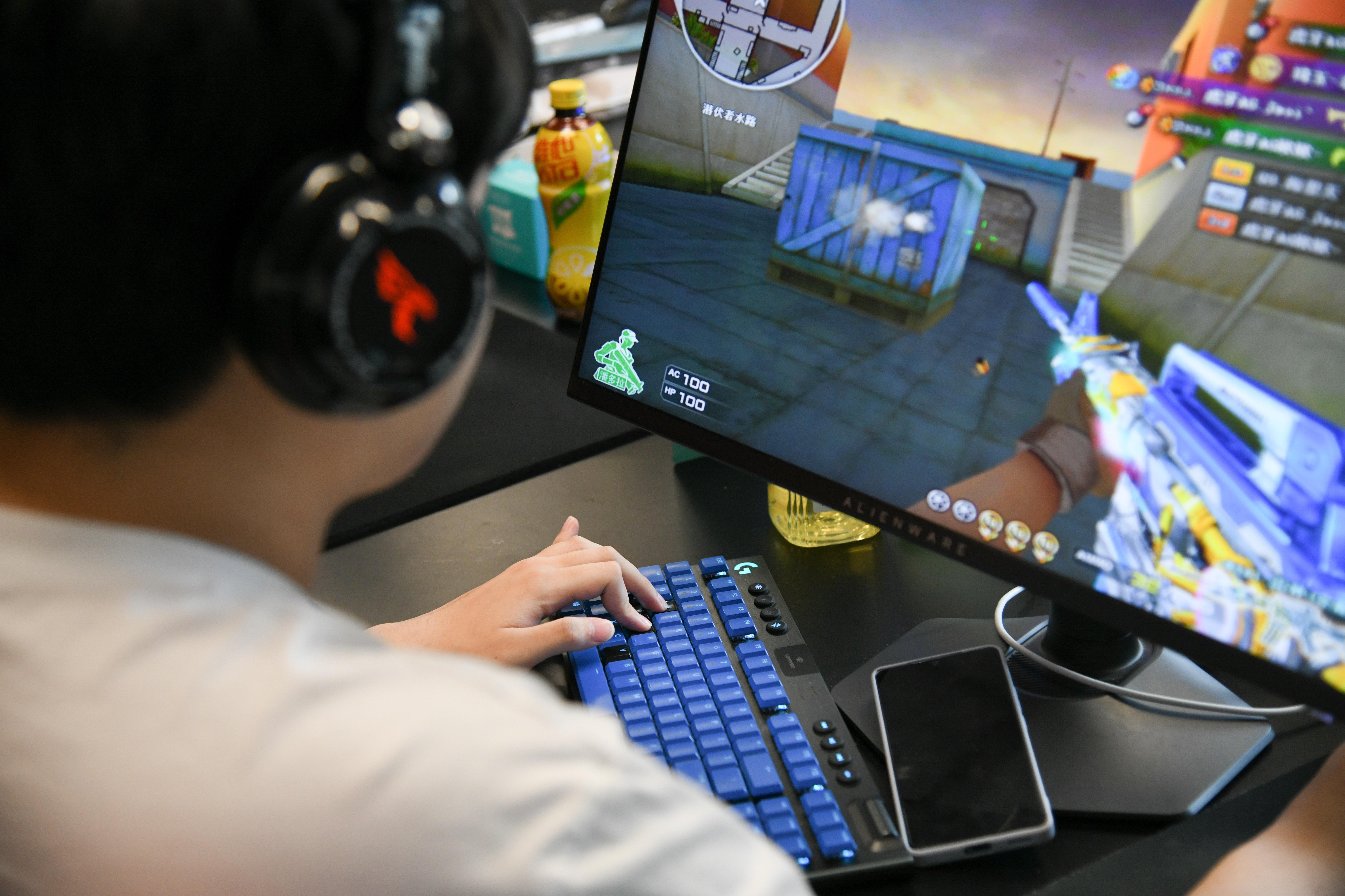 5月9日,在成都AG电子竞技俱乐部训练室,穿越火线项目成员在进行训练。 新华社记者 胥冰洁 摄