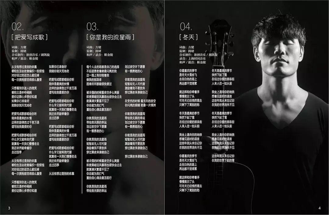方便的歌里有奋斗、有柔情;更让人难以置信的是方便还是个全能创作人,写歌、作曲、填词全套。