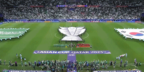 双方球员步入球场,亚洲杯1/8决赛焦点大战即将打响