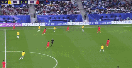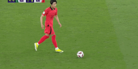 第28分钟,韩国队中路打出配合,李刚仁横向盘带后起脚远射高出球门。↓