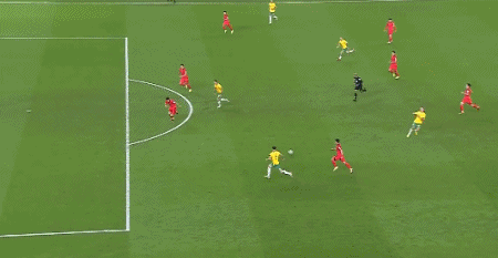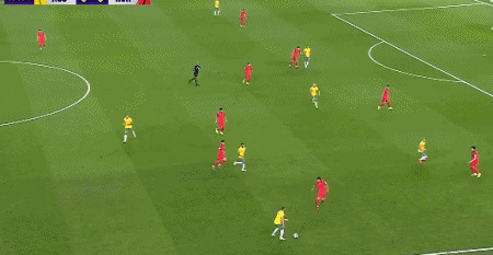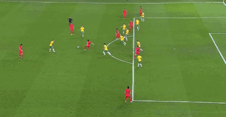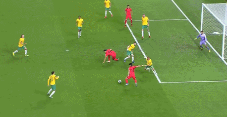 第20分钟,韩国反击打穿防线,孙兴慜内切打门被挡