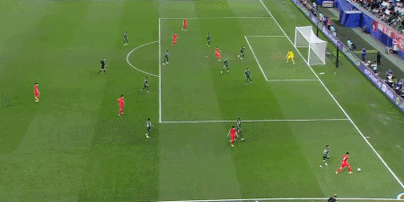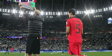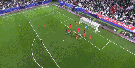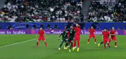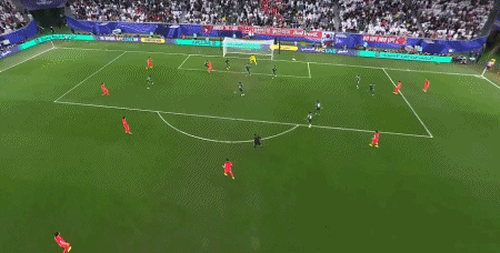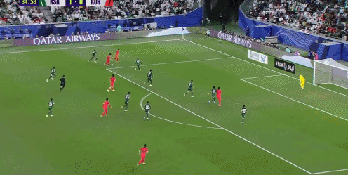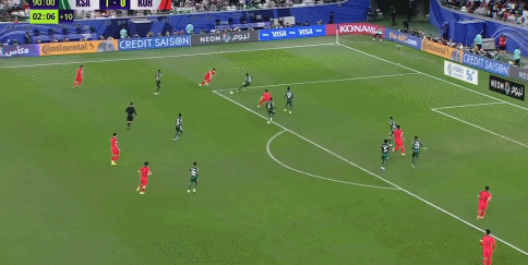 第41分钟,沙特左路角球开到禁区门前谢赫里头球中楣,第二点卡努头球补射继续中楣,最后多萨里头球被金玟哉门线解围。↓