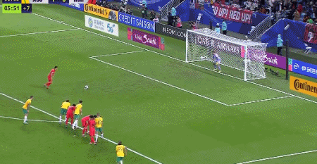 第42分钟,古德温凌空破门,澳大利亚1-0领先