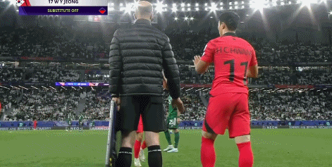 第56分钟,镜头给到场边,孙兴慜身穿训练服观战。↓