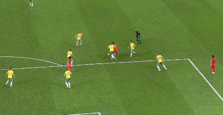 第10分钟,澳大利亚边路攻势,边裁示意球出界