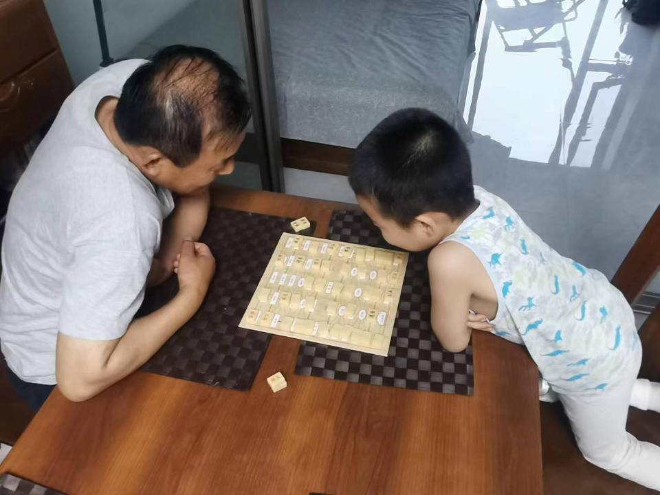 从今年年初开始,弟弟对下棋产生了浓厚的兴趣,姥爷之前当过兵,于是先切磋起了军棋。