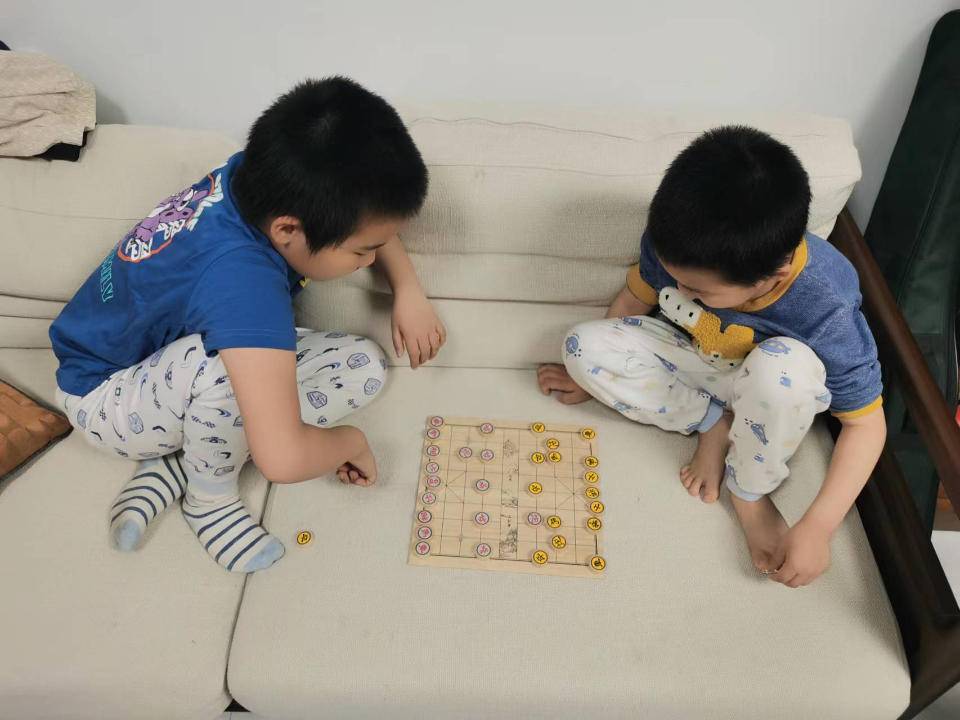 中国象棋下熟了之后,最近兄弟又跟我学起了国际象棋,因为规则相似,很快就能实战对杀了。有时候晚上回家,看到兄弟俩自己在那里安静地对弈,感觉挺欣慰。
