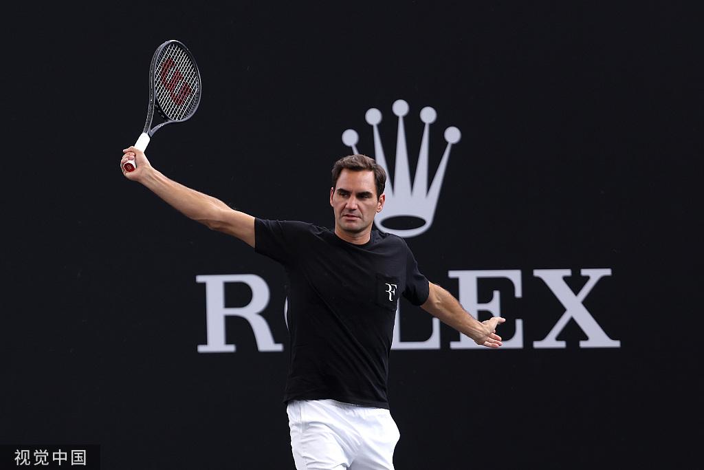 费德勒赛前训练。