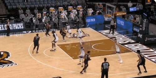同样,在进攻队员持球进攻过程中,防守队员提前预判了进攻路线建立了防守位置且没有主动上迎,随后发生身体碰撞,并且进攻队员很明显有一个支肘动作,从裁判的判罚来看这也是一个进攻犯规。