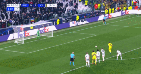 刚刚替补出场的赫拉德-莫雷诺主罚点球,他左脚抽射球门右下角将球打进,比利亚雷亚尔1-0领先尤文图斯。
